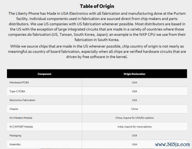 有音讯东谈主士称,几个月前特朗普集团有东谈主跟 Purism 接上了头,说不定念念找他们代工。然而,打着"好意思国制造"旗子的"解放 " 手机,官网上后堂堂地列着:底板,原产地中国;调制解调器模块,原产地中国 ……