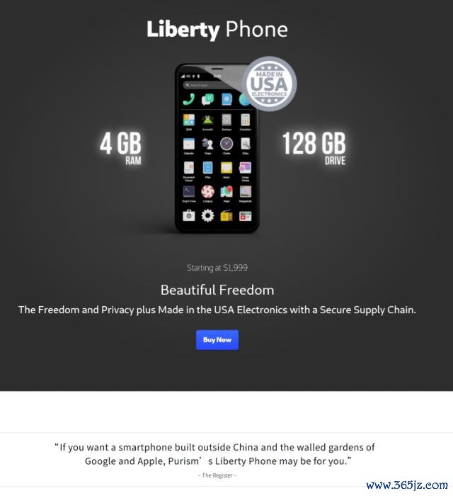 好意思邦原土能造智妙手机的公司就一家,叫 Purism。Purism 官网挂着一条能干大口号:如果你念念要一款既不是中国制造、又能珍视谷歌苹果审查的智妙手机,咱们的"解放"牌手机妥当你。