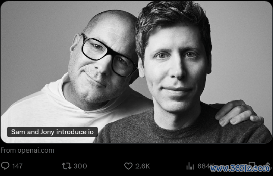 上月体育游戏app平台,OpenAI高调晒出山姆·奥尔特曼(Sam Altman)和“苹果传闻联想师”乔尼·艾维(Jony Ive)的“亲密合照”,官宣以65亿好意思元收购后者创立的AI硬件公司io,并谋略于2026年推出首批AI设备。