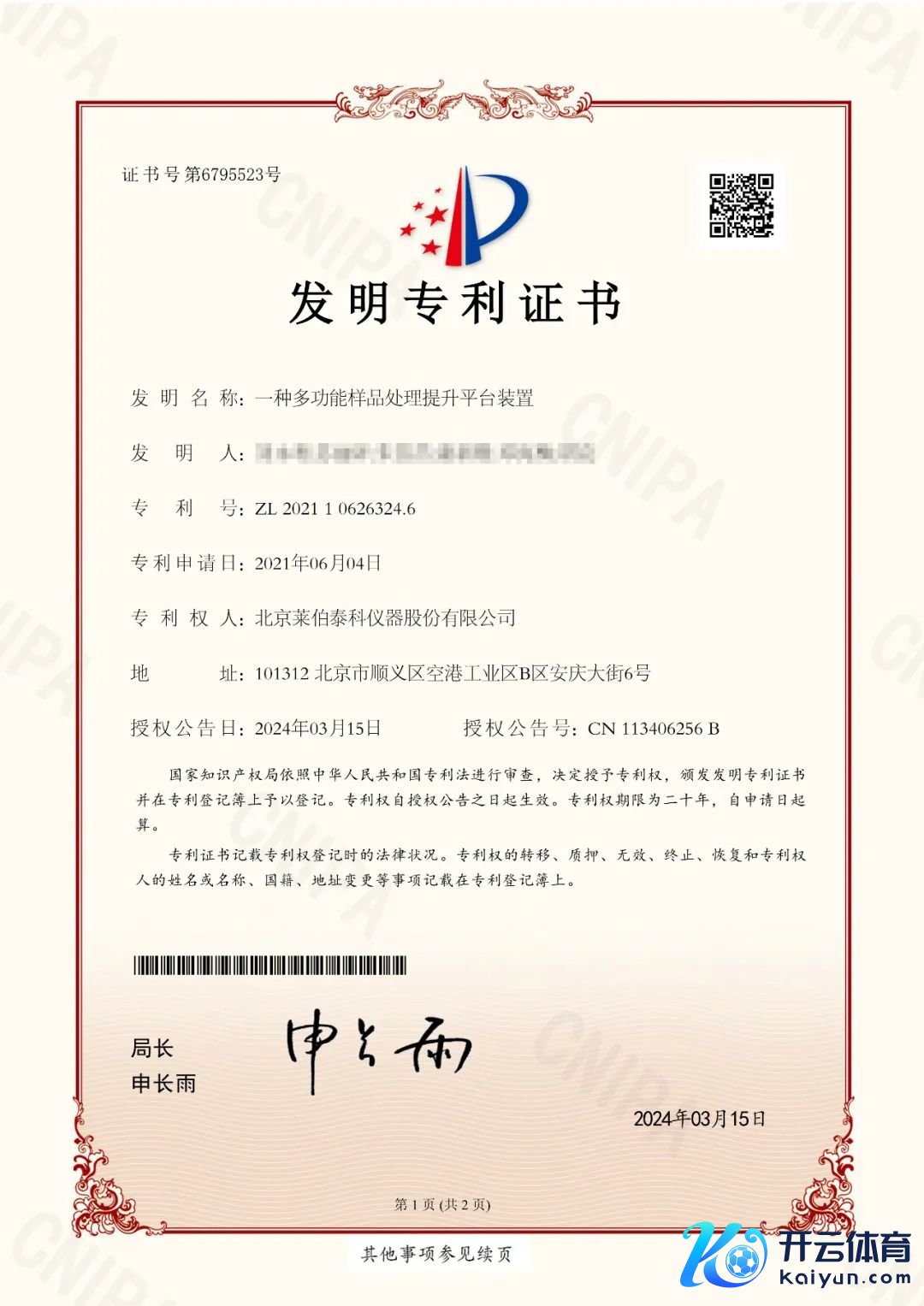 莱伯泰科自主研发的“多功能样品处理擢升平台安装”荣获国度发明专利,记号着莱伯泰科在样品前处理工夫限度的又一次首要梗阻。