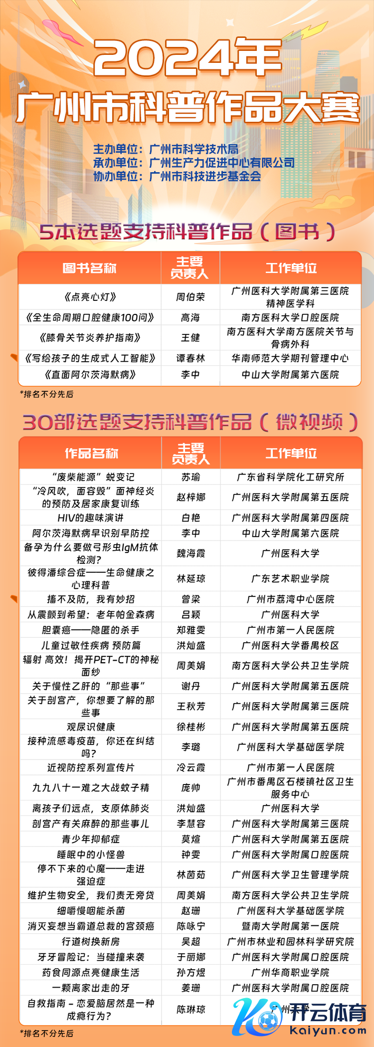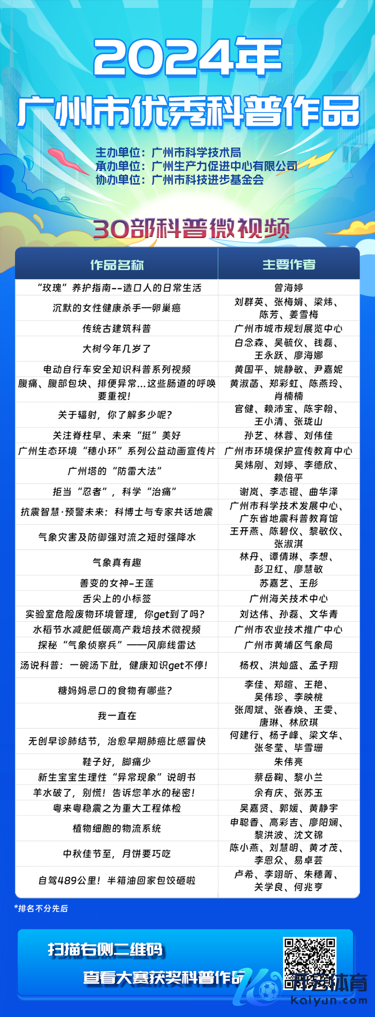 经由几个月的角逐,近日,由广州市科学时刻局驾驭、广州坐褥力促进中心有限公司经办、广州市科技跳跃基金会协办的2024年广州市科普作品大赛效率出炉!