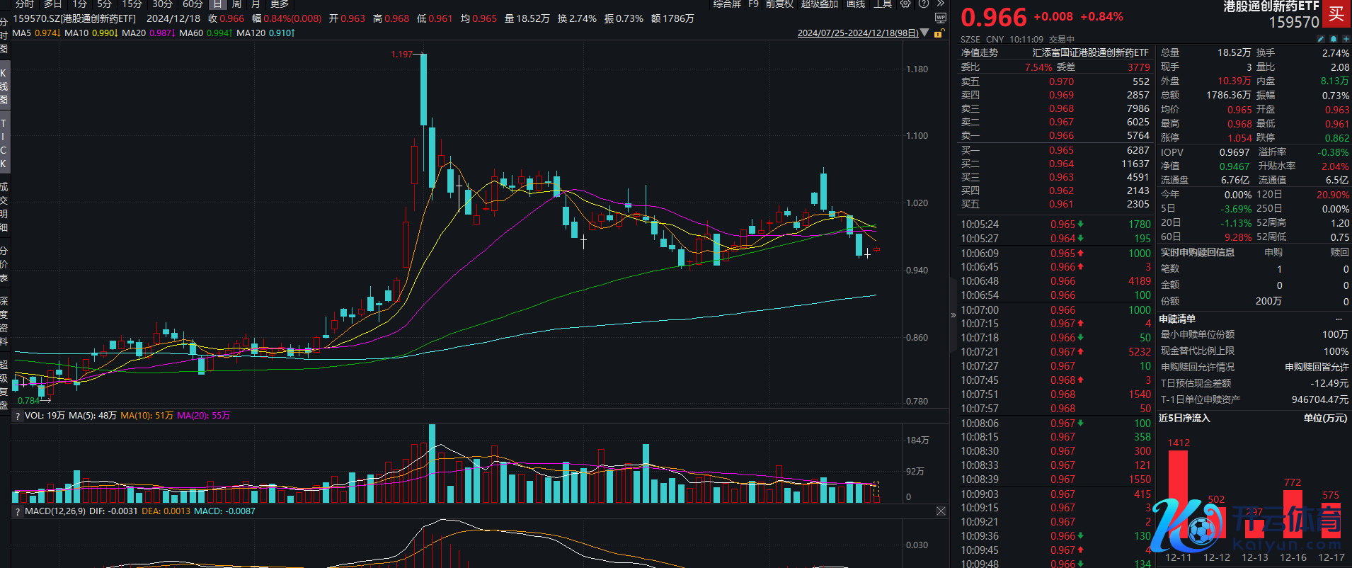 12月18日早盘,港股轰动走高,恒生指数飞腾0.90%,恒生科技指数飞腾1.33%,医药生物等多个板块飘红。截止发稿,港股通翻新药ETF(159570)涨0.84%,换手率2.74%,成交额超1700万元,盘中交投活跃。因素股方面,金斯瑞生物科技涨超4%,再鼎医药、康方生物涨超3%,药明生物、药明合联等个股跟涨。