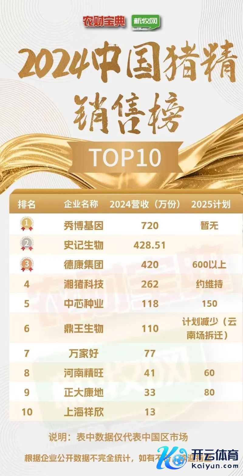字据2024年10家猪精企业的销售量,笔者将其分为粗略三个梯队: