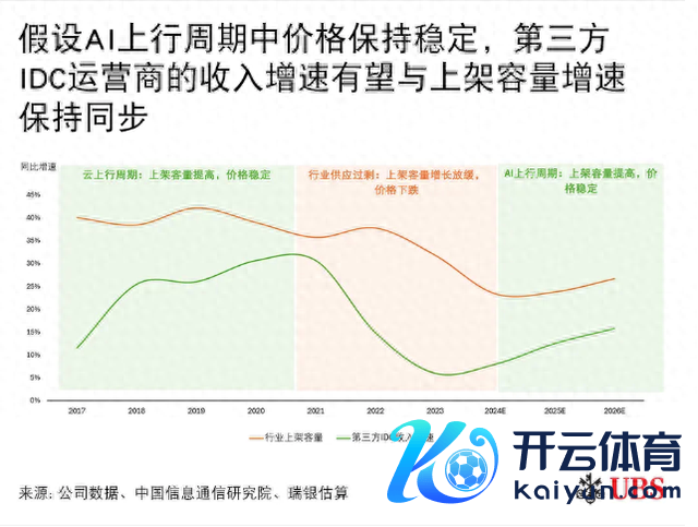 该行预测第三方IDC运营商的平均收入增速将从2023-24年的高个位数加快至2025-26年的10-20%,低于此前的行业上架容量增长预测约20%,因为房钱较低的西北地区超大限制形势占比可能上升。
