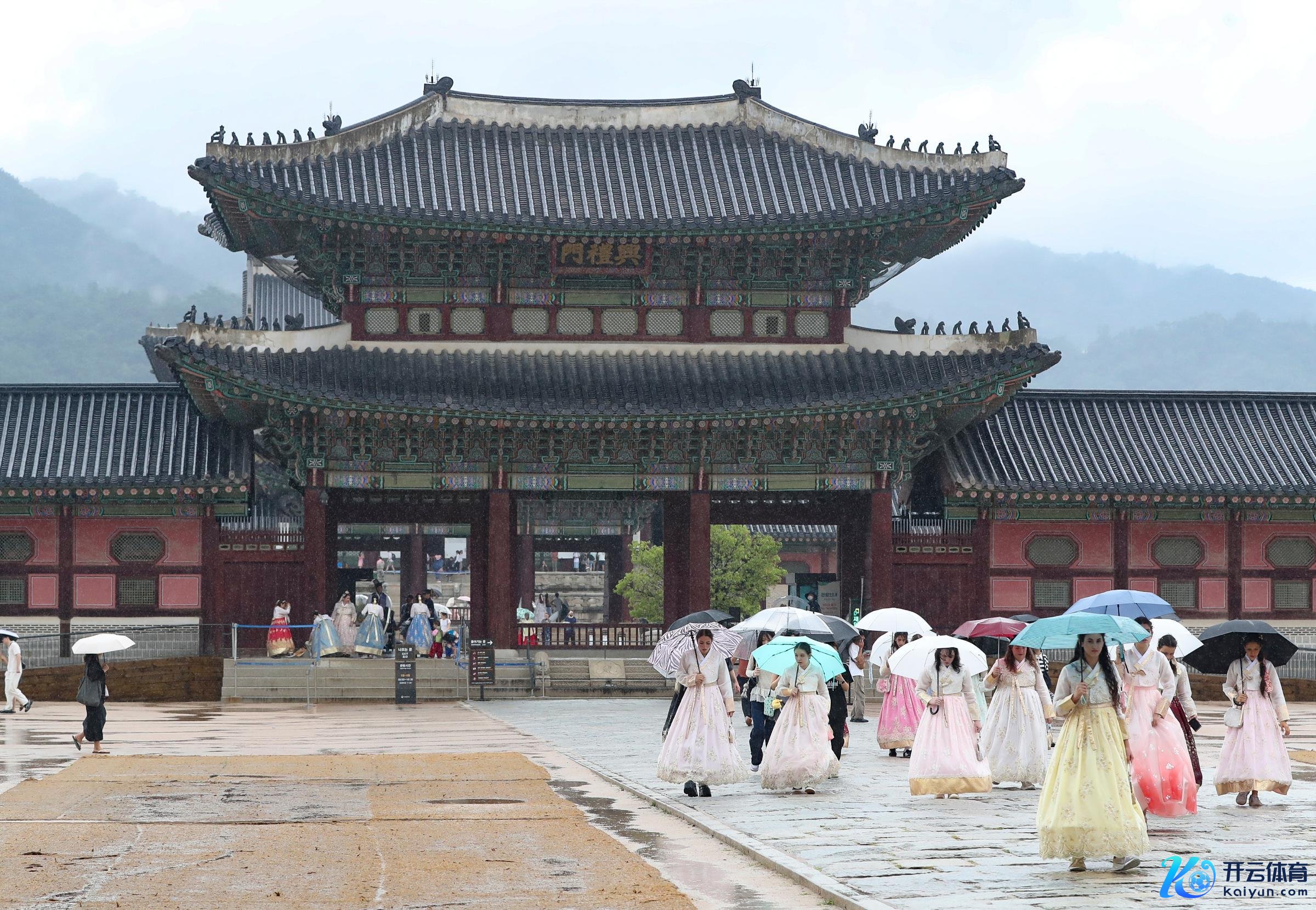 旅客在韩国首尔景福宫参不雅。 新华社 发