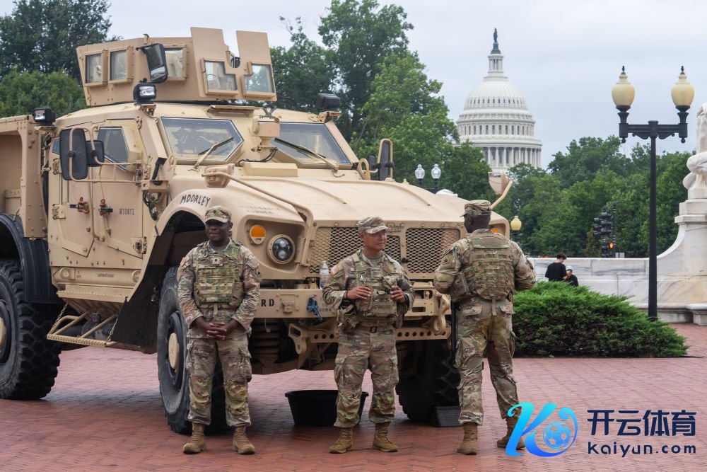 这是8月19日在好意思国王人门华盛顿的连合车站外拍摄的国民警卫队成员和车辆。新华社记者胡友松摄