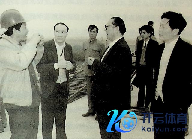 ▲1987年2月22日,黎子流(左二)奉陪习仲勋捕快江门外海大桥缔造工地。